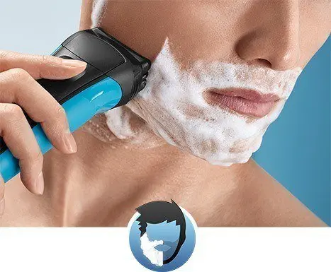100% 防水可在淋浴時使用,或配合剃鬚膏或剃鬚啫喱使用。